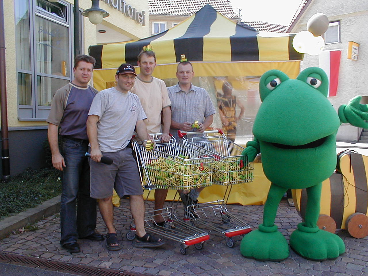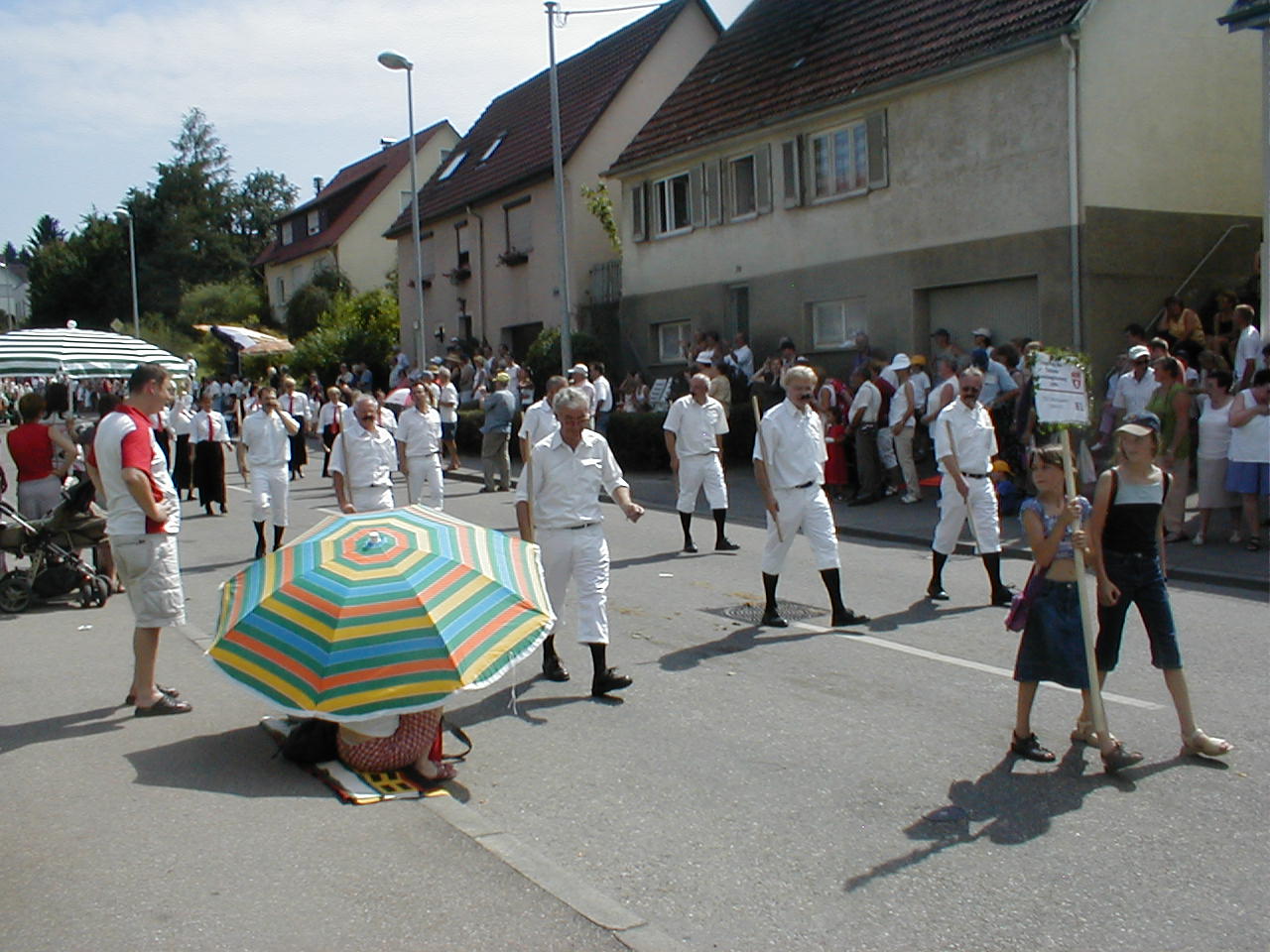 Im Zuge des Jubiläums der Gemeinde gab es auch einen großen Umzug aller Vereine. Natürlich hat auch der TSV teilgenommen. Mit einer Reminiszenz an die alte Turnerriege liefen Junge und Alte Turner in „alten Turnoutfits“, Neuhäuser Nonnen und Bädlesbesucher mit.