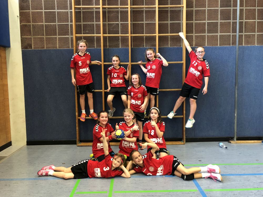 Beim Finale der zweiten Staffel ging es auch für unser Team 2 darum, den fünften Tabellenplatz zu verteidigen. Nachdem drei der fünf regulären Saisonspiele hauchdünn und mit viel Pech verloren gingen, rechneten wir uns grundsätzlich gute Chancen für das Spiel aus. Das Staffelfinale wurde im 6+1 Modus ausgespielt – für einige Mädels war es der erste Einsatz auf dem Großfeld! Von Anfang an ging es konzentriert zur Sache und durch eine Reihe früher Tore war der Bann gebrochen. Die Mädels spielten einen selbstbewussten, schnellen Handball und begeisterten auch hier mit einem tollen Miteinander. Energisches Durchsetzen war genauso zu beobachten, wie gutes Auge und gute Pässe für die sich freilaufenden Mitspielerinnen. So haben sich tatsächlich alle zehn Spielerinnen in die Torschützenliste eintragen können und konnten das 21:3/210:6 ausgiebig und mit hochroten Köpfen feiern. Toll zu sehen, wie sich die Mannschaft in der Saison weiterentwickelt hat, es liegt noch einiges vor Euch ;-).